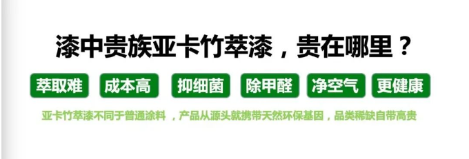 亞卡竹萃漆不同于普通涂料,產(chǎn)品從源頭就攜帶天然環(huán)?;?,品類稀缺自帶高貴,也被稱之為“漆中貴族”。