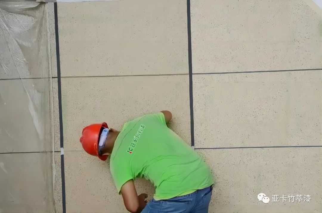 但考慮到石材的局限性,仿石漆分格可以不用在陰陽角部位進(jìn)行分格,建議在窗框與墻面接縫處進(jìn)行分格,并注意盡量間距均勻,不要出現(xiàn)小塊、小邊的現(xiàn)象。