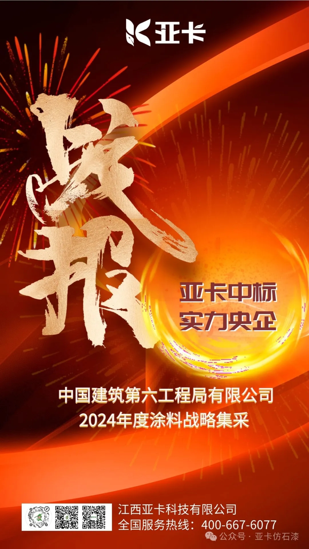 2024年6月,以豐富的行業(yè)經(jīng)驗(yàn)、高質(zhì)高效的產(chǎn)品和服務(wù)、過硬的項(xiàng)目落地能力,亞卡涂料牽手央企,成功中標(biāo)中國建筑第六工程局有限公司2024年度涂料戰(zhàn)略集采,共同譜寫城市建設(shè)發(fā)展新篇章!
